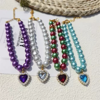 Cute Adjustable Pearl Pet Collar with Peach Heart Pendant for Small Dogs and Cats