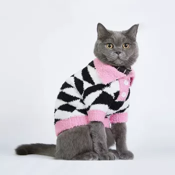 Winter Fleece Dog Sweater – Warm Thicken Pullover with Black and White Rhombus Print