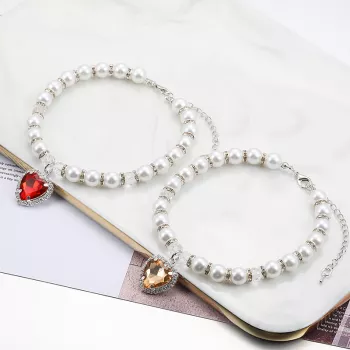 Adjustable Pearl Pet Collar with Rhinestone Charm for Cats and Dogs