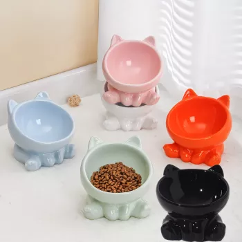 Ceramic Cat Bowl with Elevated Diagonal Design