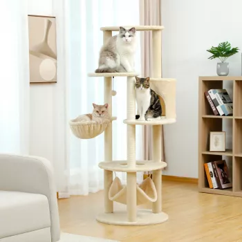 Large Cat Tree Tower with Perch, Hammock, and Scratching Post