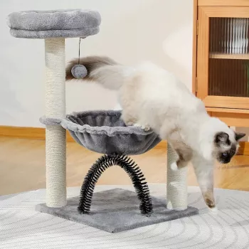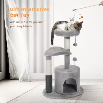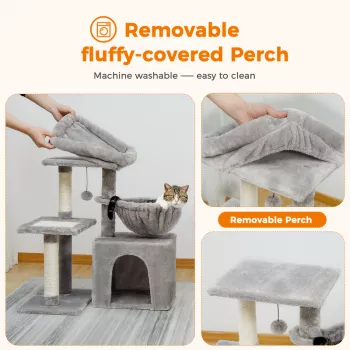 Compact Cat Tree Tower with Hammock, Scratching Post, and Plush Basket