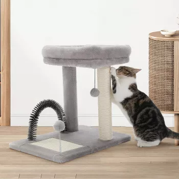 50CM Small Cat Tree with Large Perch, Sisal-Covered Scratching Post, and Self-Grooming Brush