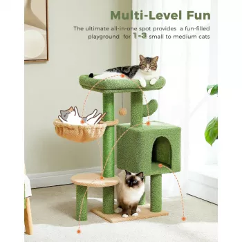 Cactus Cat Tree Condo with Hammock, Scratching Post, and Sisal Rope