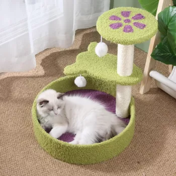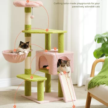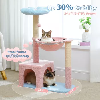 Cute Flower Cat Tree with Condo, Hammock & Sisal Scratching Posts for Indoor Kittens