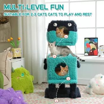Charming Monster-Themed Multi-Level Cat Tree with Cozy Condos and Scratching Posts