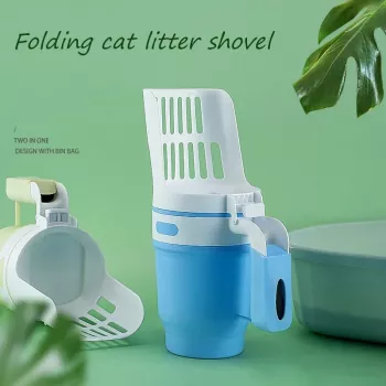 Plastic Cat Litter Scoop with Self-Cleaning Base – Easy & Efficient Litter Box Cleaning Tool