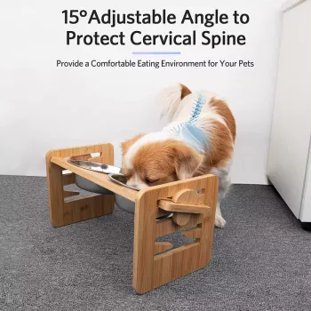 Bamboo Elevated Dog Bowls with Adjustable Stand