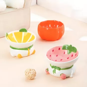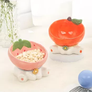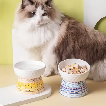 Cute Cat & Small Dog Ceramic Feeding Bowl with High Foot Design