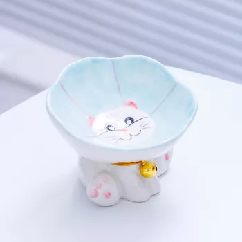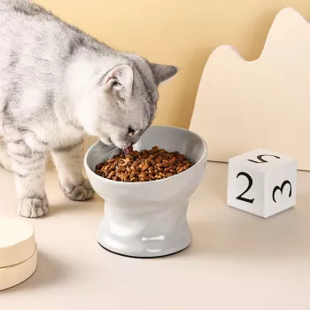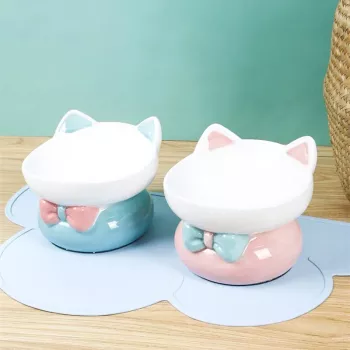 Elevated Cat Ceramic Bowl with Tilted Design for Easy Eating and Drinking