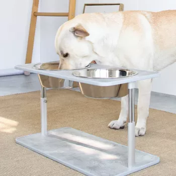 Elevated Ceramic Pet Bowl with Wooden Stand – Double Raised Cat & Dog Food and Water Feeder